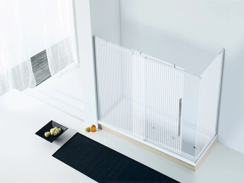 Cristallo spessore 8 mm trasparente con serigrafia a righe verticali.
