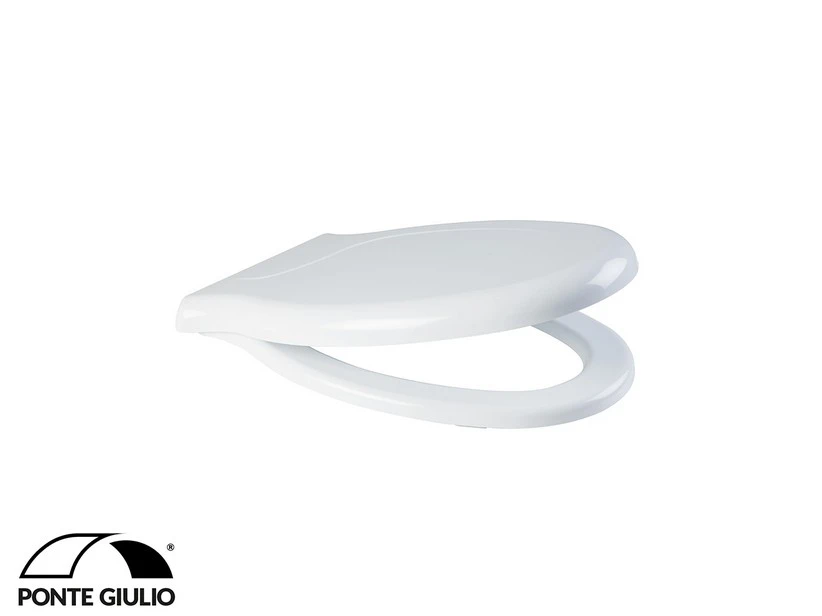 ROSSARI2 Sedile WC in resina termoindurente di colore bianco. Dotato di cerniere in acciaio con finitura cromo.