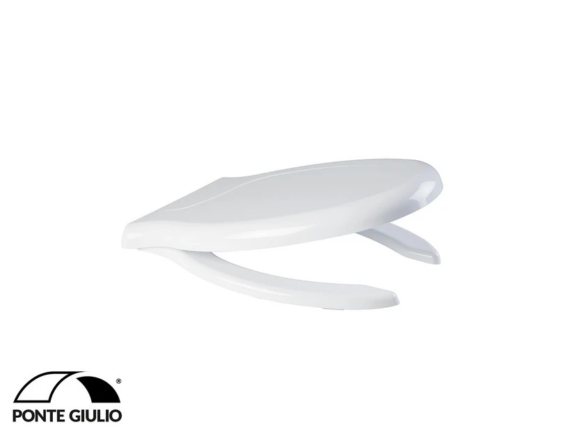 ROSSARI2 Sedile WC con apertura frontale in resina termoindurente di colore bianco. Dotato di cerniere in acciaio con finitura cromo.
