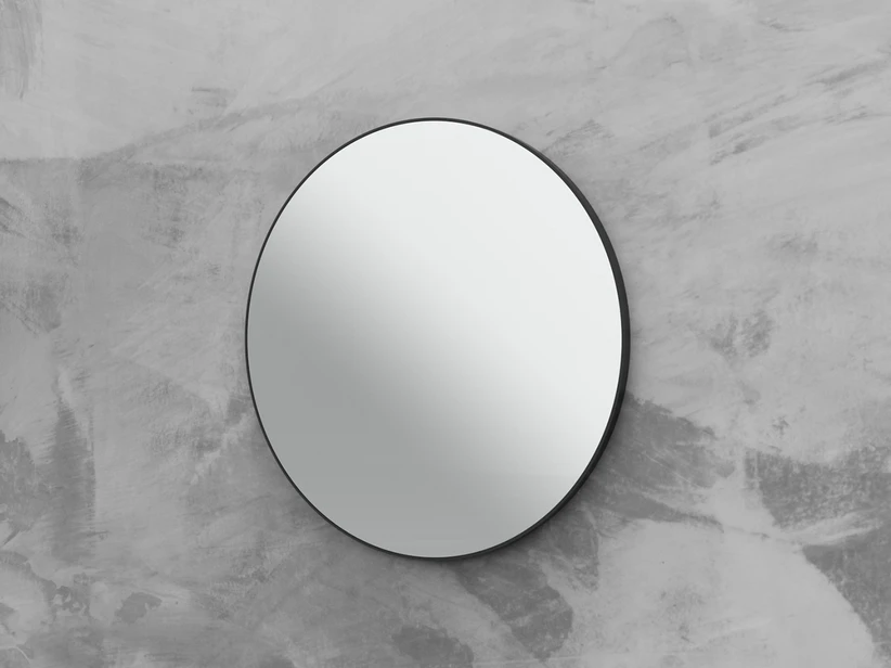 QUEEN Specchiera Tonda cm Ø80 cornice spessore 5 mm in acciaio verniciato nero opaco – staffa di predisposizione per abbinamento a lampada LED
